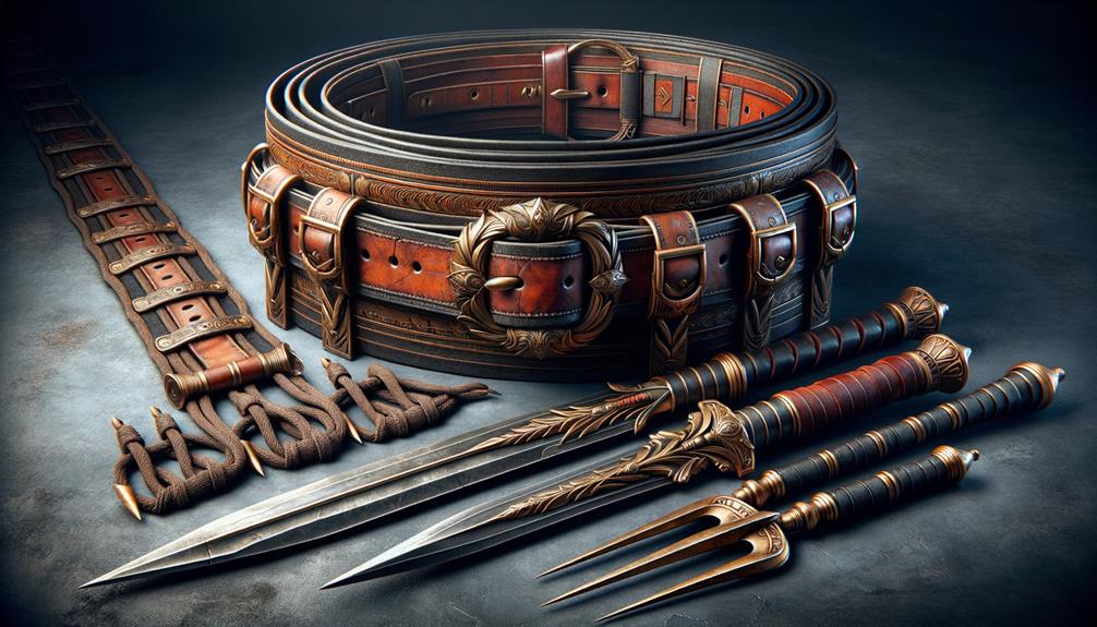 The Roman belt often had strips of leather with small metal plates hanging down in the front — these gave extra protection to the lower abdomen and groin, areas otherwise vulnerable in battle.
